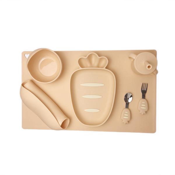 7 Pieces Silicone Baby Feeding Set Carrot Shape Dining Table Mat Suction Cup Images |